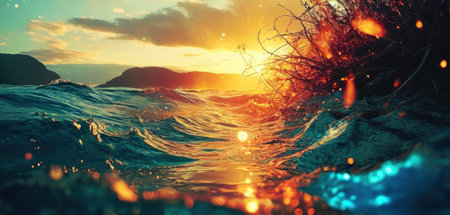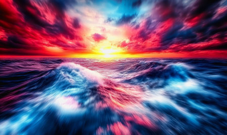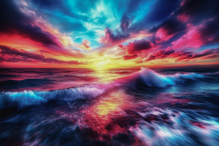 Surreal Seascape Vibrant Ocean Sunset with Dreamlike Hues.