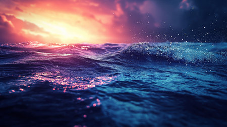 A stunning view of ocean waves under a vibrant sunset, capturing the beauty of the sea and sky.