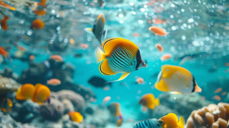 Colorful butterflyfish glide through a marine world, portraying underwater beauty and serenity