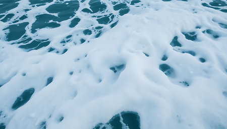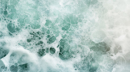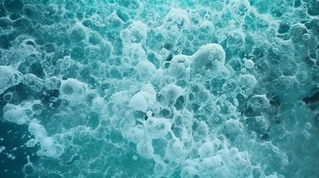 Captivating close-up of turquoise sea foam, showcasing intricate bubbles and textures. Perfect for nature themes, calming decor, or ocean-inspired projects.
