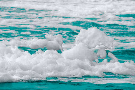 Rough deep turquoise and blue sea with white foam bubbles texture background