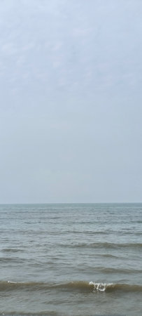 A tranquil view of gentle ocean waves beneath a soft gray sky evokes feelings of calm and serenity, making it an ideal backdrop for relaxation or meditation.