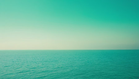 A vast stretch of lush green grass meets a tranquil ocean under a clear blue sky. Soft waves gently lap against the shoreline, while distant clouds cluster in the horizon, creating a peaceful and serene atmosphere perfect for relaxation.