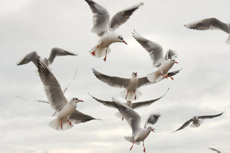 Flock of seagulls in flight, nature.
