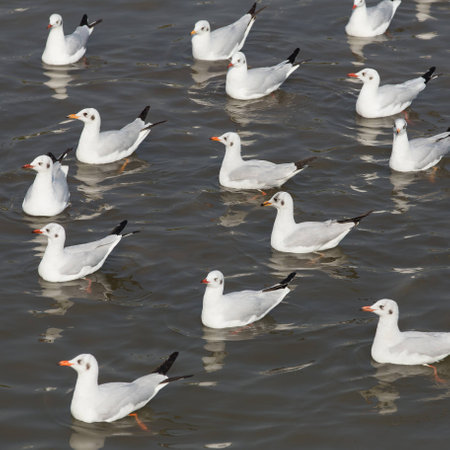 Close up view of flock of seagulls in open north sea
