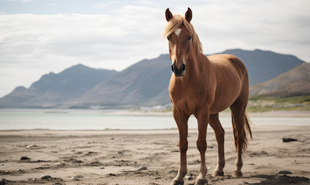 Handsome horse at the beach ocean view Generative AI, Generative, AI