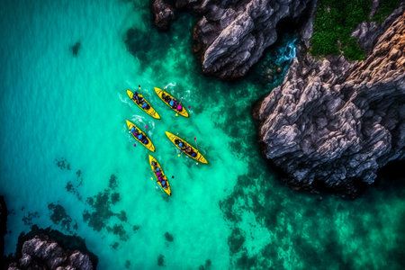 Generative AI : Aerial view of people on kayak paddling in the water in Krabi Thailand