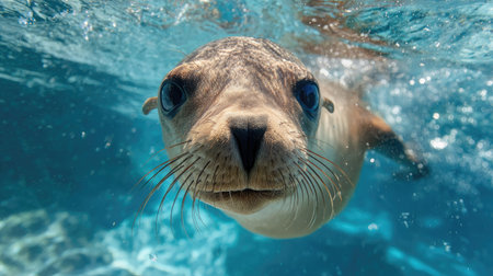 AI Generated. Funny sea lion swimming underwater in the ocean Animal theme