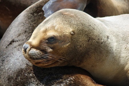 A beautiful shot of a California sea lion seal enjoying the rays of the sun