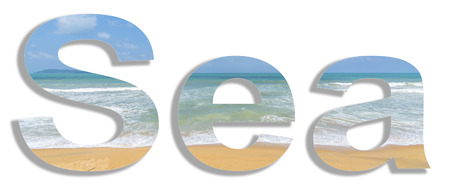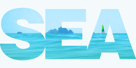 Vector illustration of the sea in letter clipping mask. Summer time and travelling. Koh Chang Lonely beach in Thailand