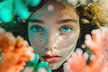 Enchanting portrait of a young woman with striking blue eyes and freckles
