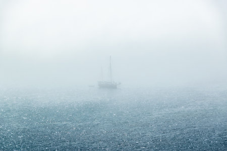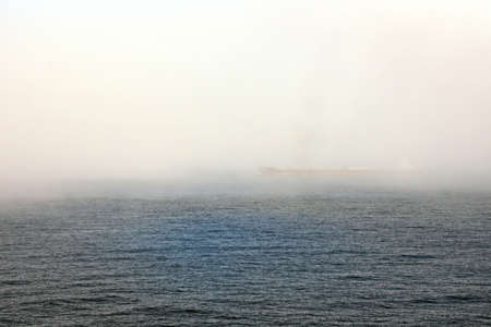 Fog at sea limits the visibility of ships during navigation. Pacific ocean