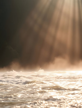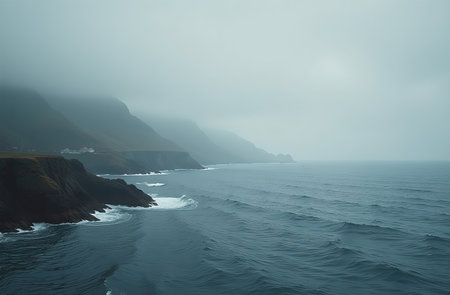 Experience the serene beauty of a misty ocean scene featuring gentle waves and a tranquil atmosphere. This image captures the essence of nature