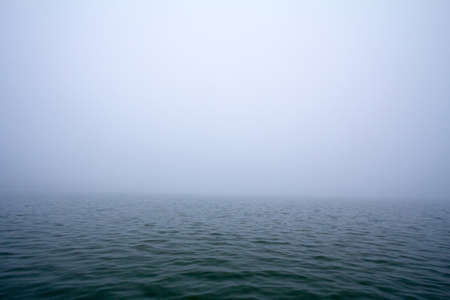 Blue sea water surface in foggy weather. Natural background. Toned.