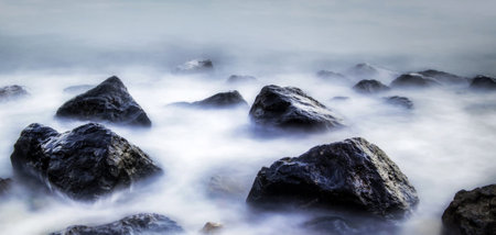 Long exposure of rocks in the sea, long exposure shot, long exposure
