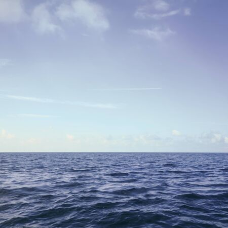 Blue horizon between the ocean and beautiful blue cloudy sky