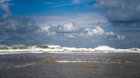 Beautiful view over the waves of the North sea coast, Zeeland, Netherland