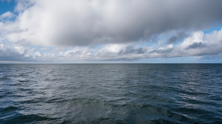 Vast ocean waters meet a cloudy sky creating a serene seascape ideal for travel or maritime themes Use it for backgrounds or mood setting.