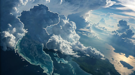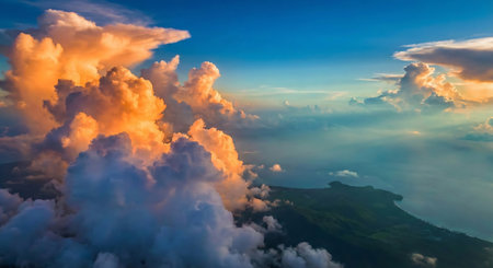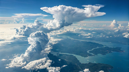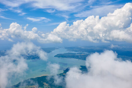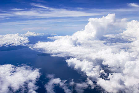 View on cumulus clouds over Thailand and Andaman sea from the plain