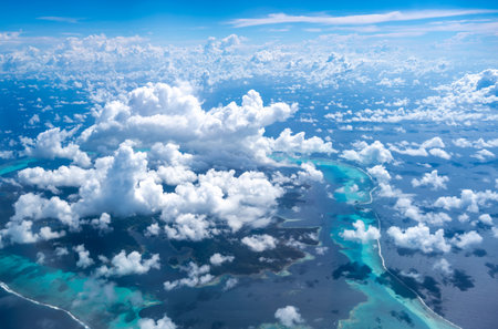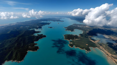 Aerial view of the sea and islands in the Pacific Ocean.ai generated