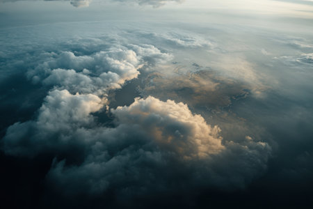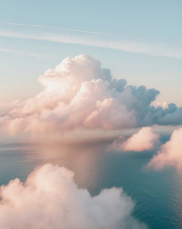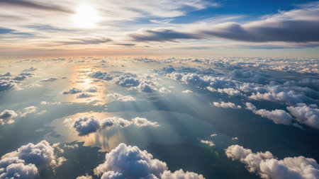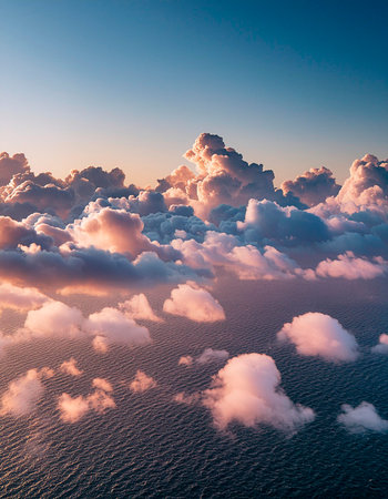 AI Generated. Aerial View of Fluffy Clouds at Sunrise Above the Sea