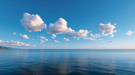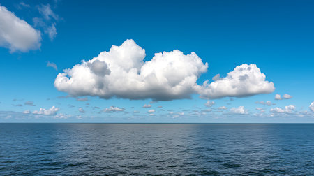 Experience a serene ocean view adorned with fluffy clouds in a peaceful coastal landscape.