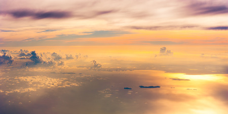 Aerial view of beautiful cloudscape over the sea at sunset.