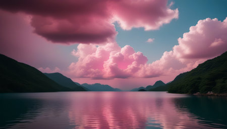Beautiful sunset with clouds reflected in the calm water of the lake