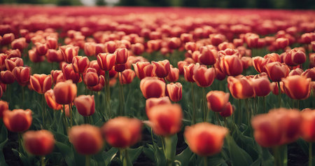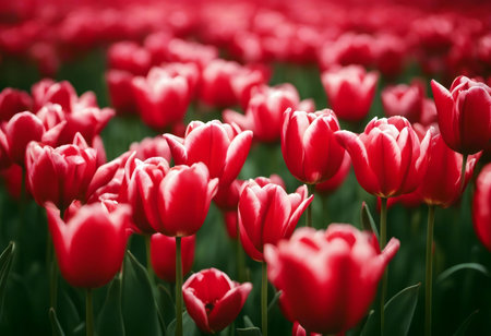 Red tulips in full bloom, creating a stunning visual display of nature's beauty.