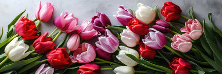 fresh and colorful tulips, creating a vibrant spring background. Infuse a sense of romance and elegance reminiscent of Valentine's Day. SEAMLESS PATTERN. SEAMLESS WALLPAPER