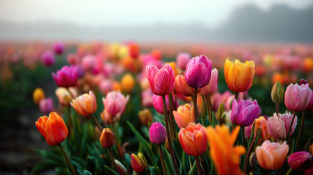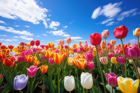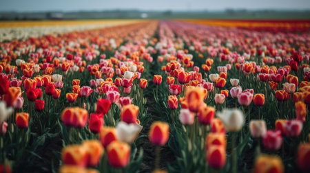 Vibrant spring tulip fields displaying a colorful array of blossoms in full bloom