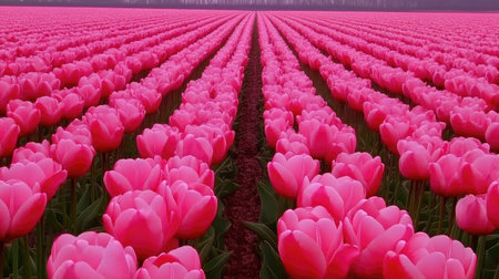 Experience the breathtaking beauty of vibrant pink tulip fields in full bloom, showcasing nature's artistry in a stunning outdoor landscape during spring.