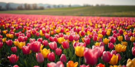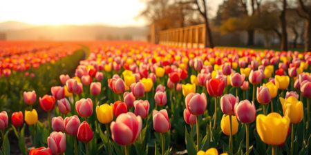 Bright tulip field at sunset showcasing vibrant colors and natural beauty in spring