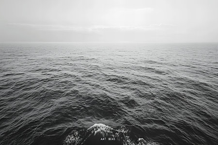 Featuring a vast expanse of the ocean, seen from above in black and white. the horizon is clear with no land visible on either side. it's a tranquil scene with gentle waves gently lapping against each other. in sharp contrast to that is an atmosphere filled with mystery and curity as if something s