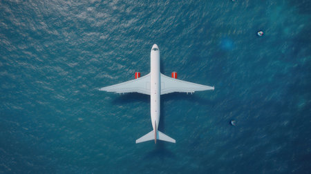 Airplane in the blue sea. View from above. 3d rendering