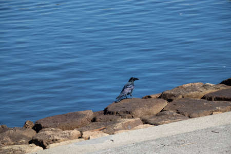 Black crow resting on the quay