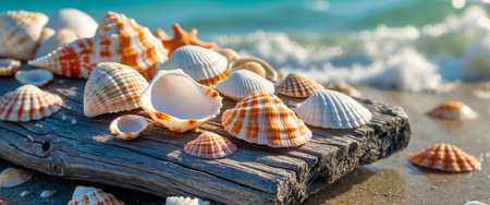 Coastal gems: seashells, delicate remnants of marine life, scattered along beaches as souvenirs of the oceans depth and mystery, beauty capturing the essence of the seaside.