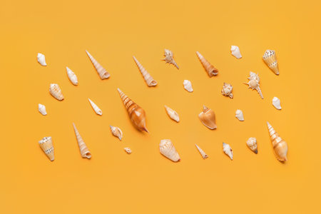 Sea shells pattern for design. Seashells for summer advertising. Marine shells texture. Sea shells background. Marine seashells.