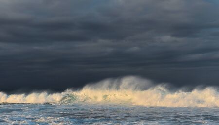 Storm clouds over the sea. Dramatic sky and giant waves.