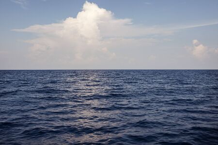 Ocean skyline with blue sky and white cloudy, natural landscape background