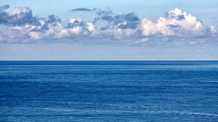 Beautiful blue ocea white clouds and horizon