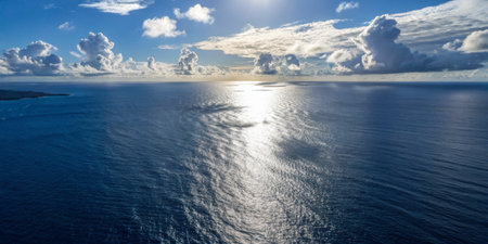 An aerial view of eternal blue sea or ocean with sunny and cloudy sky