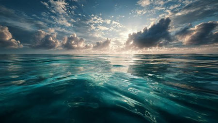 AI Generated. Artistic representation of the deep sea merged with the sky and clouds, capturing the essence of the ocean