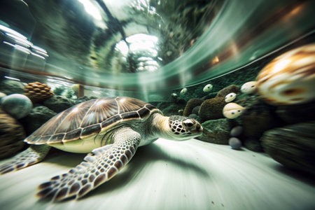 A Serene Moment Captured: Sea Turtle Swimming in an Aquarium Tank
