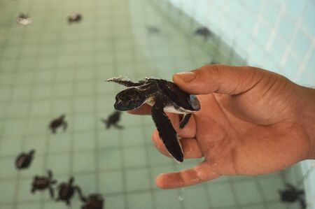 Baby Turtle in the conservation, in Ujung Genteng, Sukabumi, Indonesia
