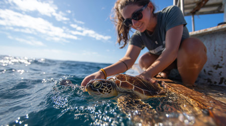 Releasing a sea turtle: a symbol of conservation's tireless work to protect marine life