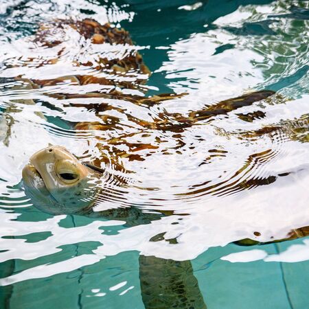 turtle swimming in the pool, close-up of a sea turtle