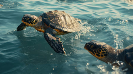 sea turtle swimming, with its flippers breaking the waters surface, created with generative ai
