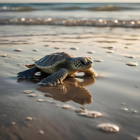baby turtle swimming to the ocean, its journey just beginning, created with generative ai