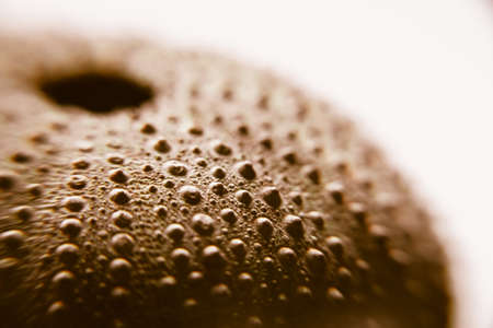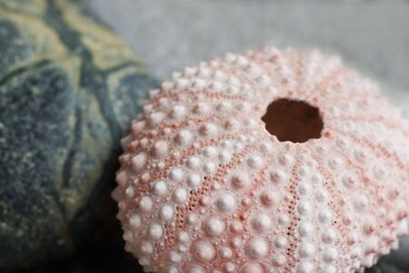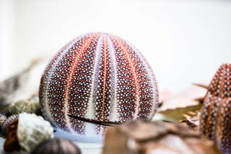 Changing the color and texture of the shells of sea urchin due to ocean acidification. The concept of environmental damage and climate change. close up. macro.
